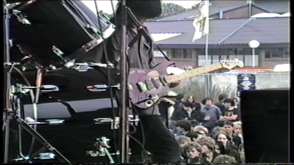 Here are a few more shots of Lee's effects from a later '87 gig, not nearly as clear: