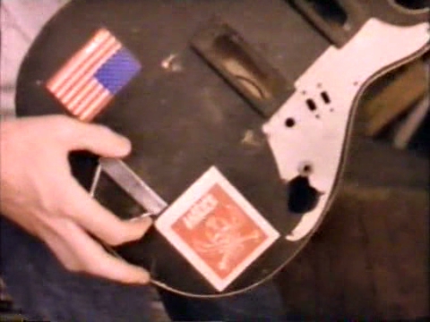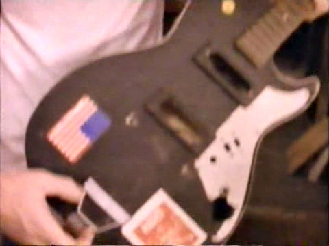 The most peculiar moment in this documentary is when Thurston holds up a black Les Paul copy about 10 minutes in, says it's his favorite guitar and that a lot of the songs were written on it, and then says "it's called the Drifter". Except...it's not the Drifter. It's the Les Paul copy that's visible behind Lee in the righthand "EVOL" era picture dissected above. Now, Thurston even looks directly at the headstock when he calls it the Drifter (though I can't actually make out what's written there), so I have no idea what he's talking about unless there were two Drifters, or he was totally bullshitting (wouldn't be the first time, I'm sure). All other evidence indicates that the Drifter we all know and love is in, in fact, the original Drifter.