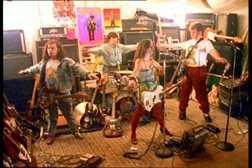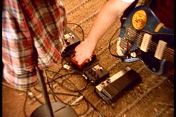 Okay, I can easily identify every guitar in this room but can you identify the amps and effects? Is that a Ludwig Phase II in front of fake Kim, and if so, why did it take them until "The Diamond Sea" to use it? Fake Thurston has a couple of Turbo Rats, a red DOD (perhaps an FX52 Classic Fuzz?), and what appears to be a Jax FW-3 Fuzz-Wah.