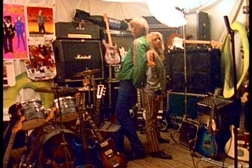 A black Mustang is visible too, with a white pickguard -- I'm assuming this is the same one Lee used for "My Friend Goo" in 1990, only the pickguard had been removed. Whether he used this on the 'Daydream' tour, I have no idea...