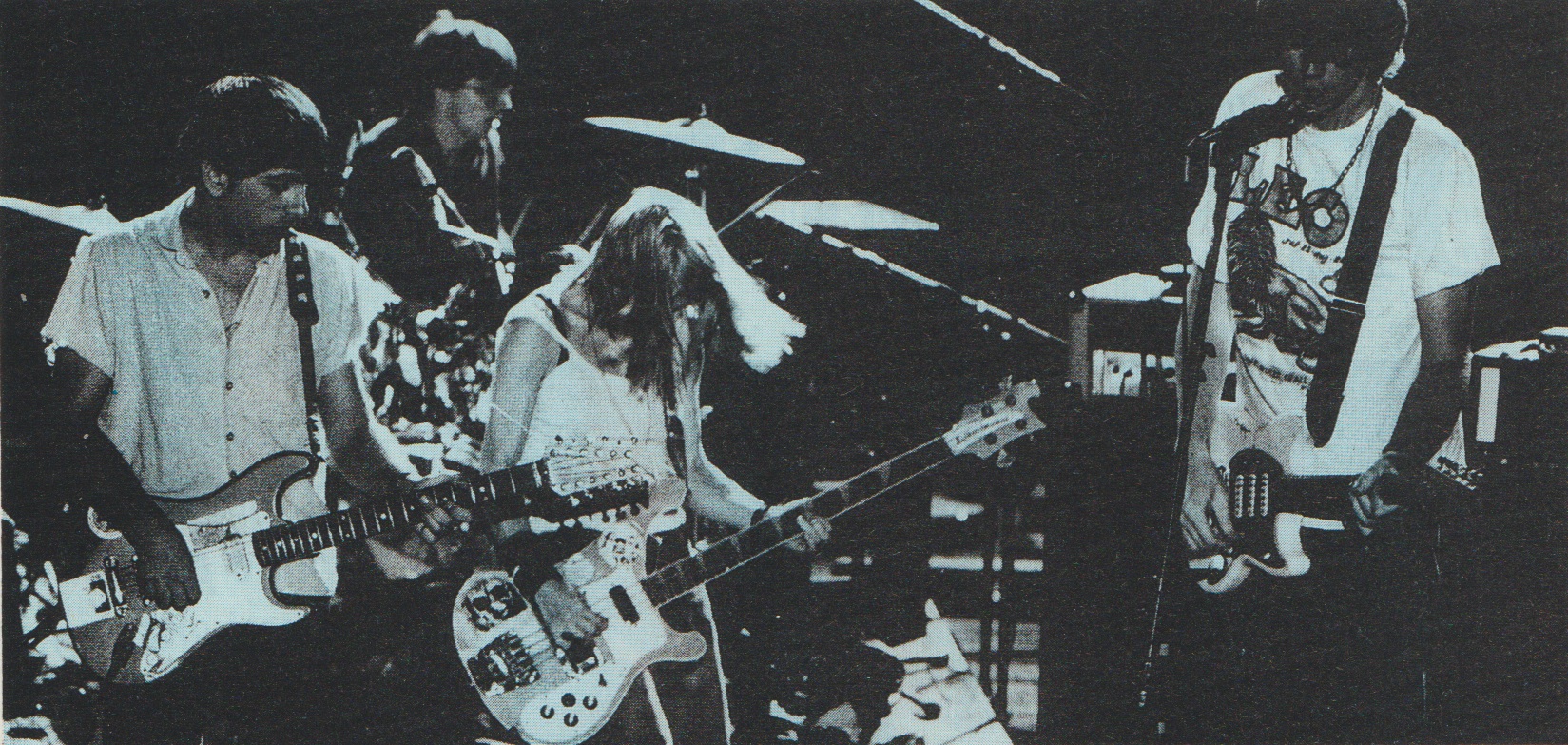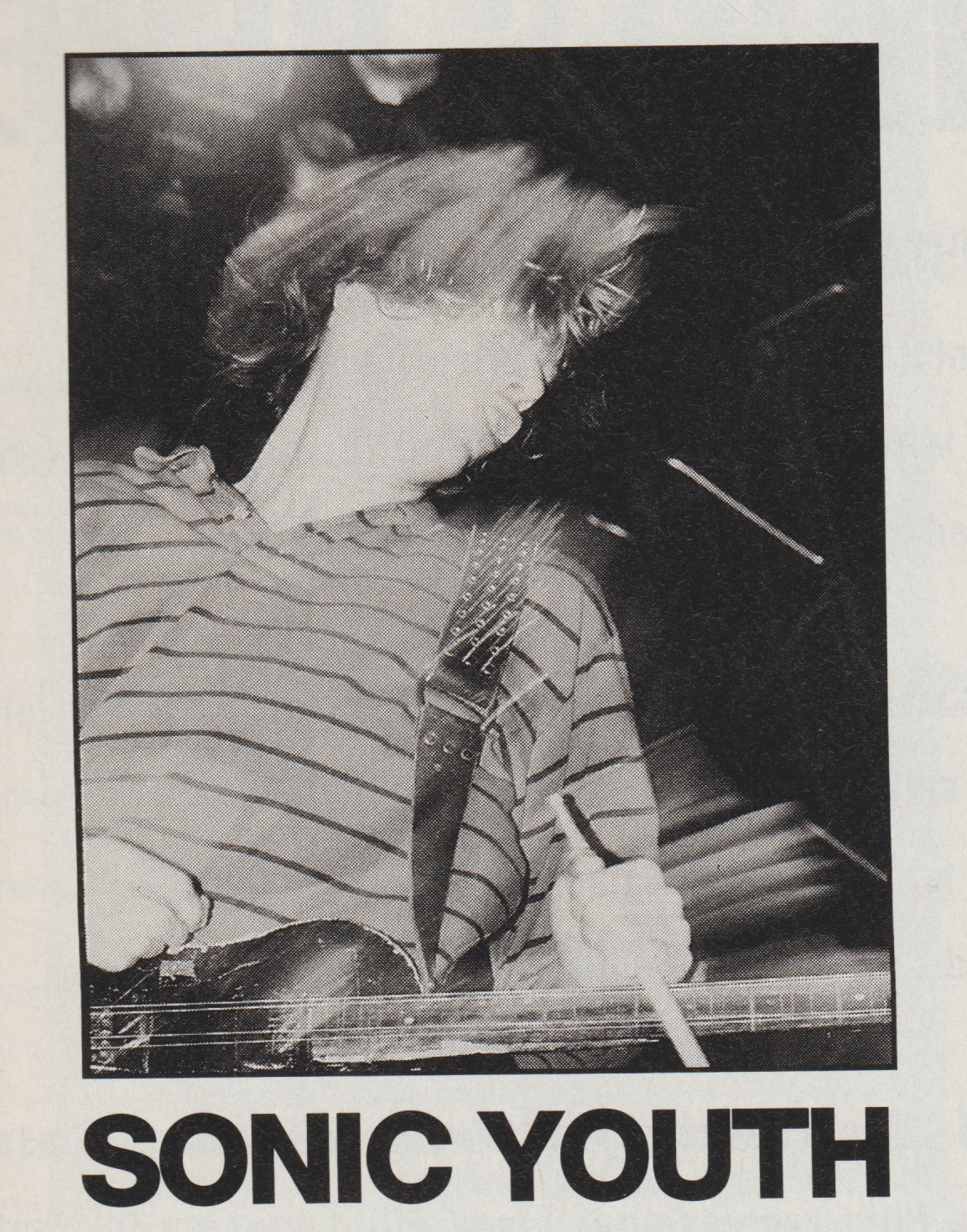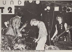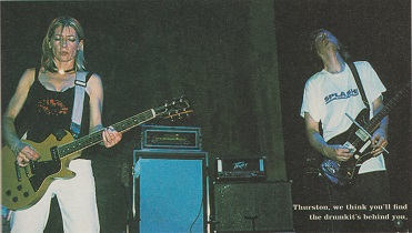 THURSTON: "Kim wrote that because she was worried that we were writing too many four- and five-minute songs. She said, "Hey, we have to write some two-minute jobbers." She sat down with the guitar, wrote that song and showed it to us. I find it very difficult to play her songs because she has a very strange sense of rhythm. It sort of puts me off. Kim plays with this other girl named Julie. I've tried to play with them but they have this very weird, female-rhythm thing going. They play together very well, but I can't play with either of them.