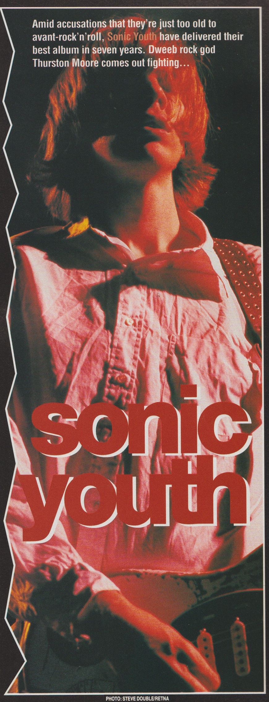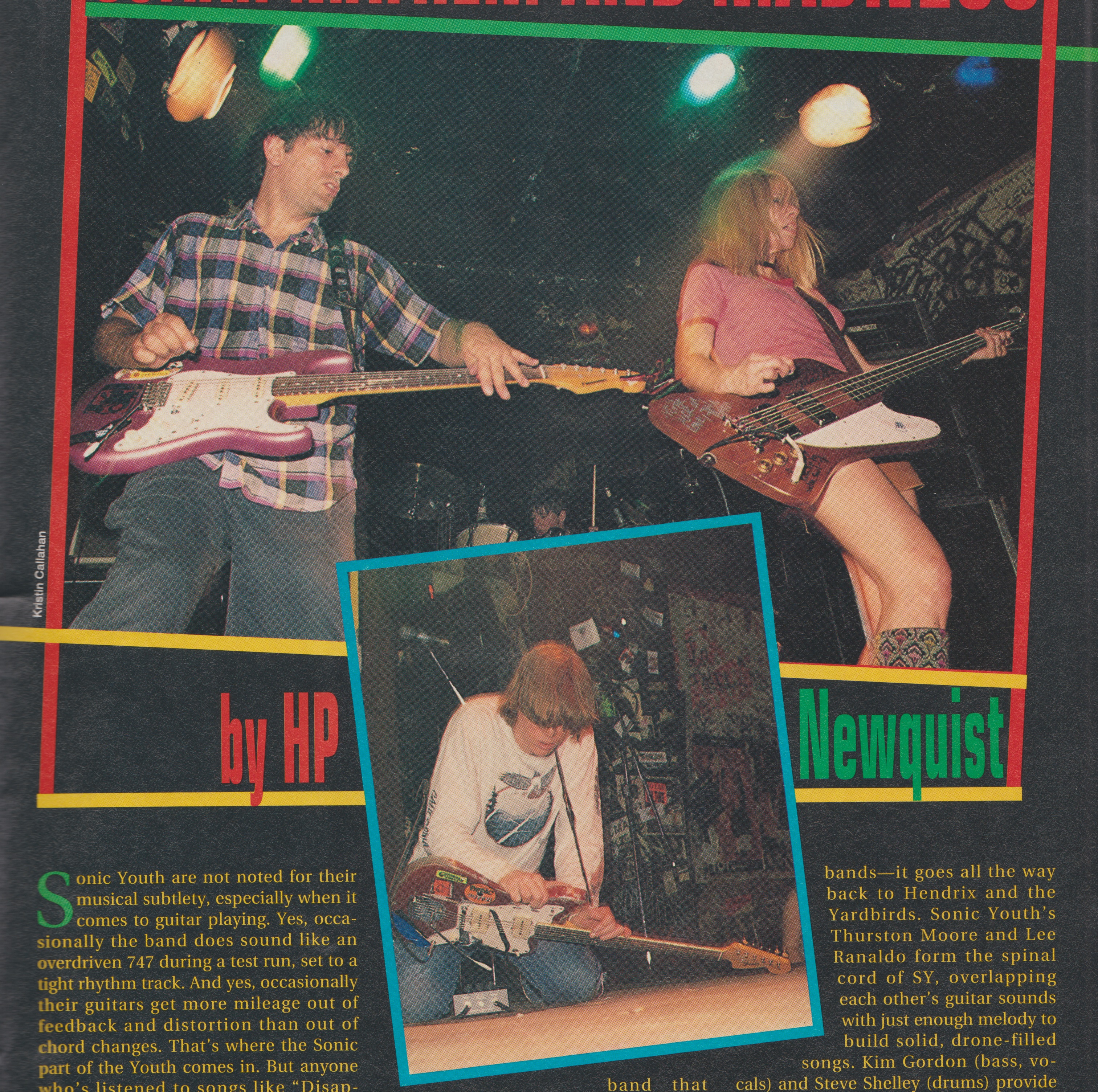 This short piece opens with a single paragraph on page 12 before continuing all the way on page 134 (of a 136-page magazine). Interviewed before the July 3rd, 1992 CBGB show, Thurston and Lee offer their take on some key tunes from the band's history.