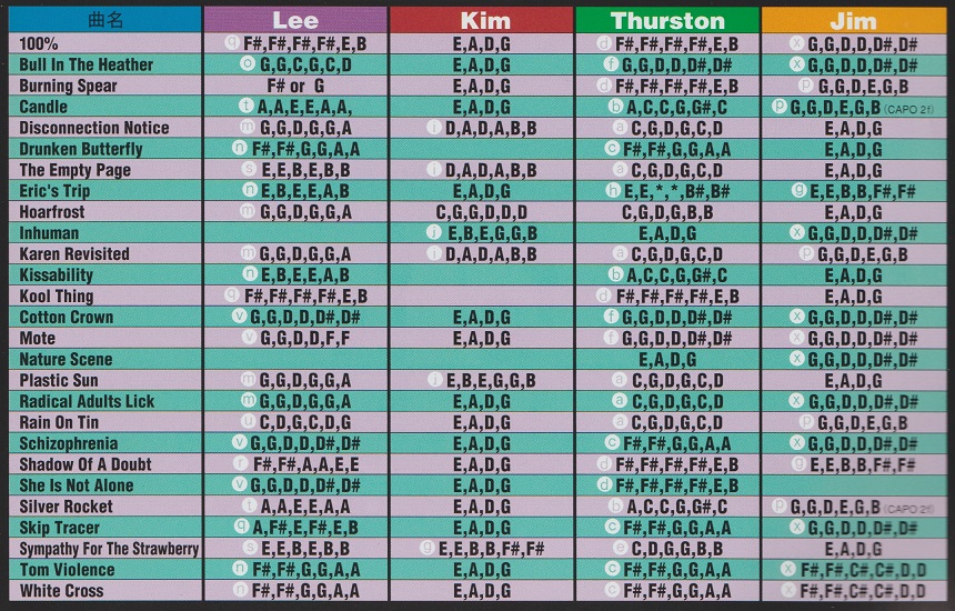 THURSTON: "That's in standard tuning. Much of the first record is in standard tuning. It wasn't until after this record was completed that we really got into creating new tunings. "I Dreamed A Dream" came out of a picking thing we did. Richard Edson wrote the lyrics, which was very strange. Usually, I'll write the lyrics or Kim or whoever is singing, but never the drummer."