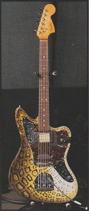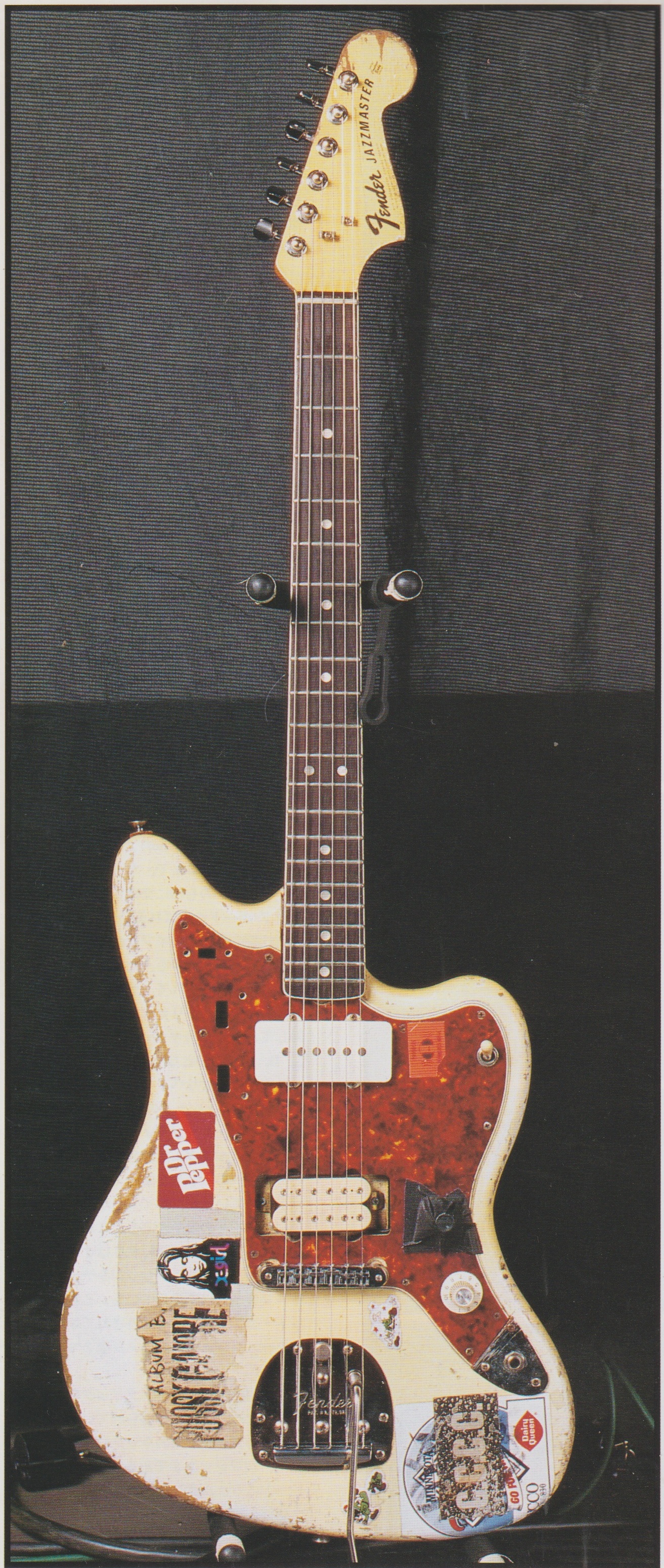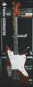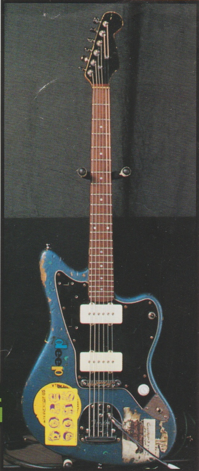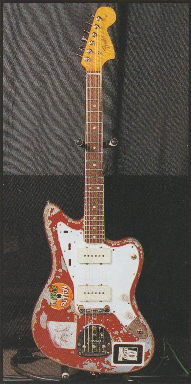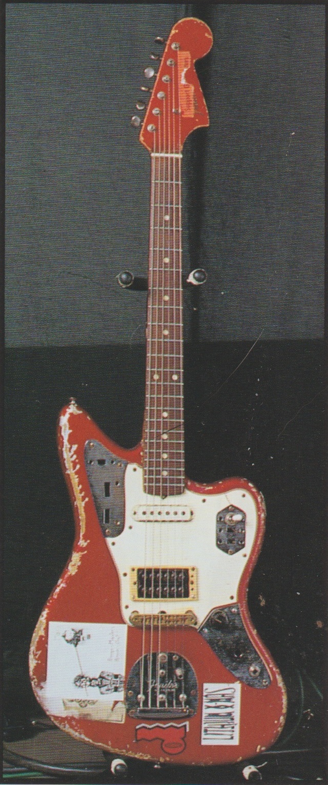 Jumping ahead a decade, I was never quite able to pin down one of the guitars on the band's stolen gear list, but with new info I can confirm that the "Fender Jazzmaster, red, 140682, Squiggly pen lines on body" guitar is actually Lee's "redhead" Jazzmaster, first used on the Washing Machine tour. It's most visible on "Sugar Kane" during the 04/07/96 Germany "Easter" set. Apparently Thurston was using this guitar as a back-up for the blue Jazzmaster in F#F#F#F#EB on the '98 tour. He uses it for "Death Valley '69" in the encore of the 05/19/98 Denver show, and you can clearly see it now has squiggly pen lines all over it.