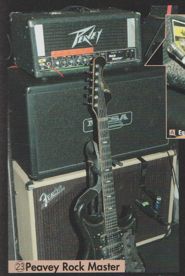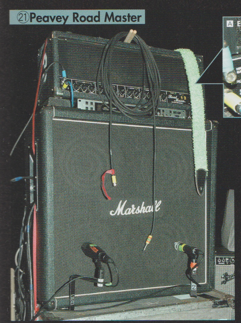As mentioned above, I obtained the June 2005 issue of Guitar Breakers, containing a long-sought Nurse tour gear analysis. Once again, they cover a sampling of each member's guitars, their amplifiers (with extra inset detail on the EQ settings), and effects boards. There's no song/tuning list to cross reference this time, the tunings are printed alongside each guitar's portrait. I'd still like to know which magazine this material was originally published in.