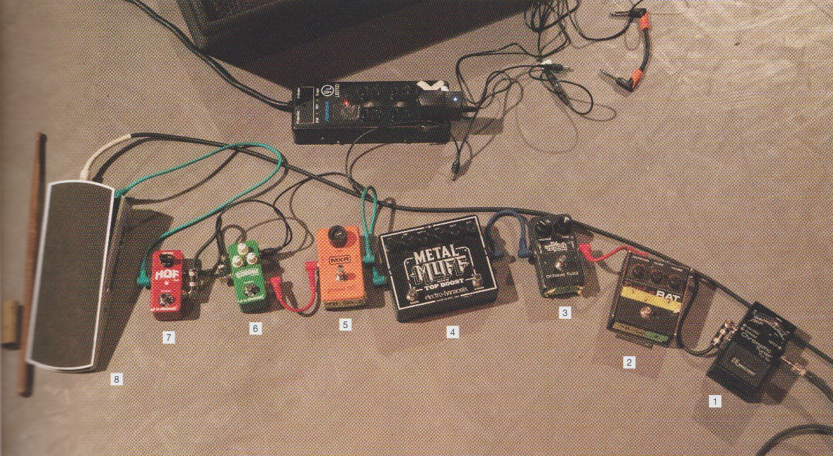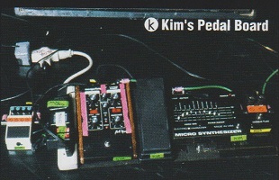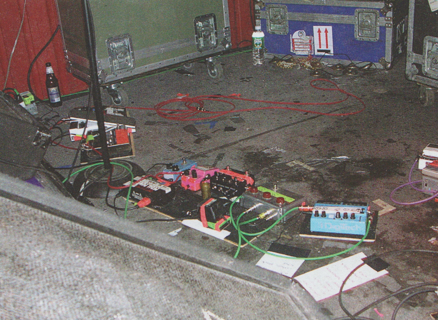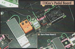 Back to Jim, we can see the DOD pedal even more clearly, and have our best view yet of the blue/white 2-footswitch device that seems to move all around his board - surely someone knows what this is? The previously unidentified pedal that is now on the other side of the Holy Grail is actually the Solec Phase Shifter that was also sold in the 2018 auction. I'm sure he swapped other things in and out here and there, but this does seem to be his consistent set up from 2003 onwards - the two Crowther pedals, the Wah/Vol, the Analog Delay, the unknown DOD pedal, and later the unknown 2-footswitch and Holy Grail, plus the Tuner. If anyone can offer any more info, or better pictures, please do!! If you know of any gear magazines I haven't covered yet (I'm aware of a very unhelpfully titled magazine Bass Guitar having a 2004 feature on Kim) I would also be very interested. Thank you to everyone who wrote with info this time around, and to everyone who continues to visit this page!