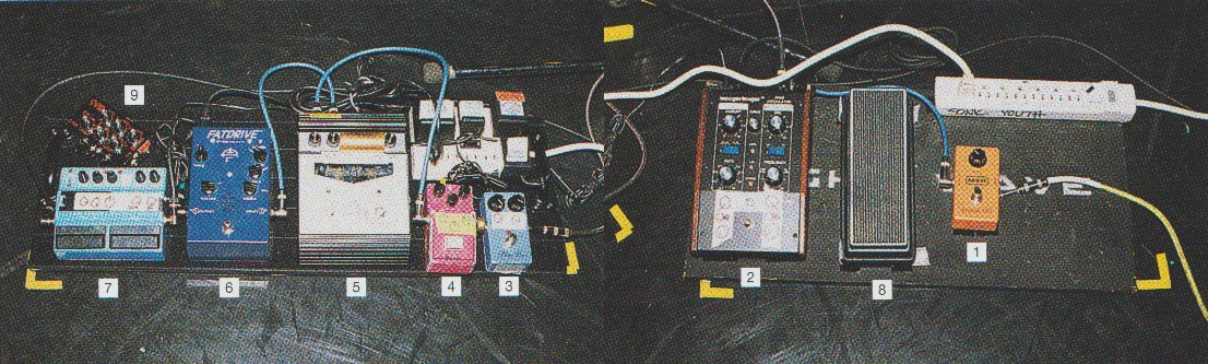 I never had a clear picture of the band's gear during the Daydream Nation era. When I first researched this site, the only full show available was a grainy video from 3/89, and a few other TV things that offered clues. Since then, a decent amount of '88/'89 photo/video documentation has surfaced and helped put some of the puzzle pieces together.