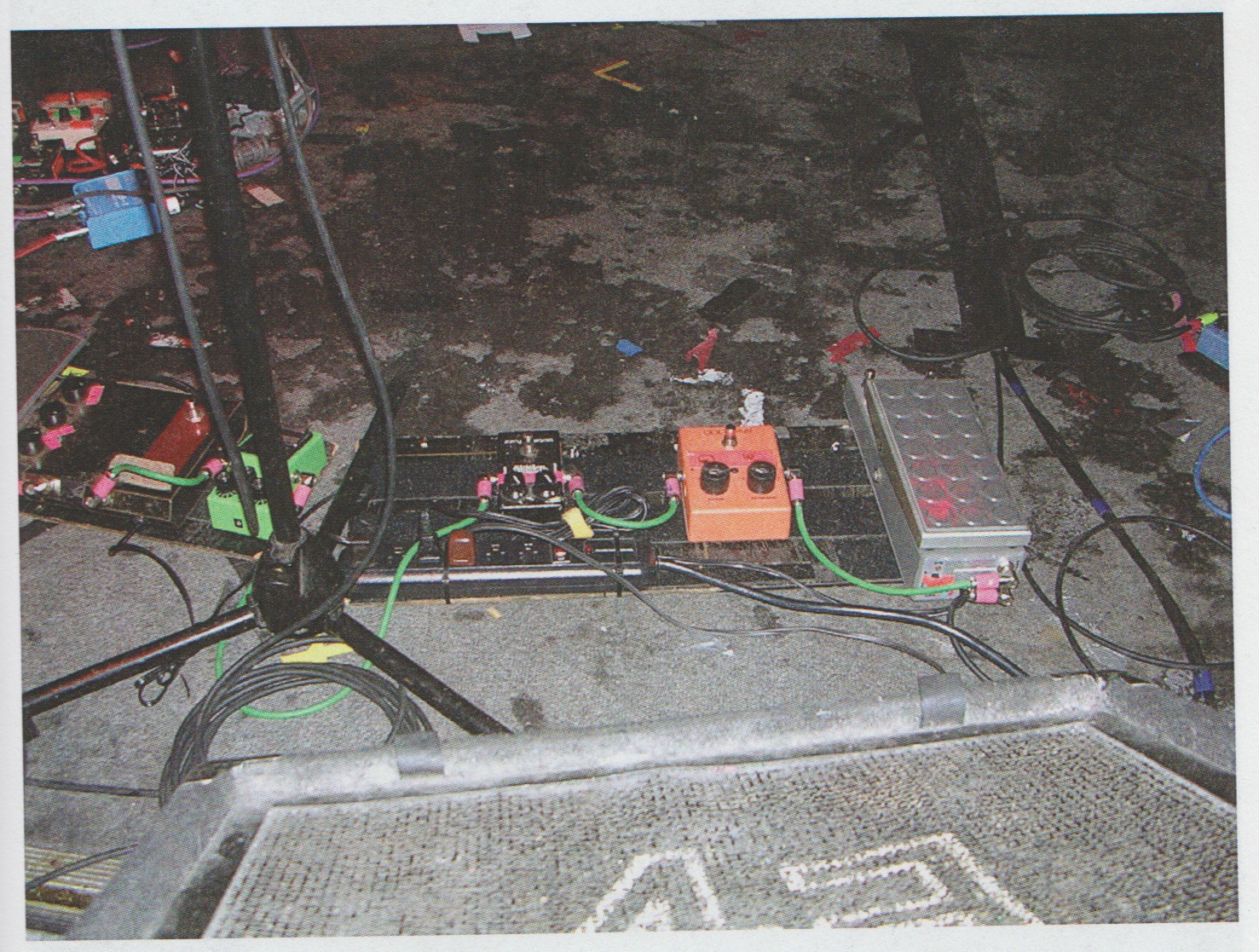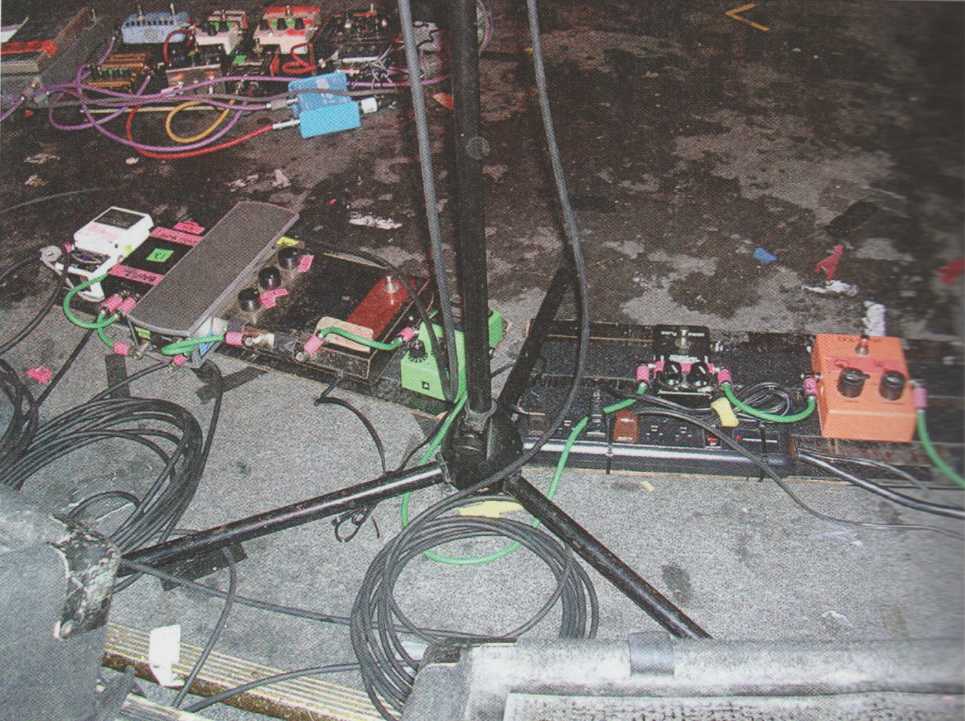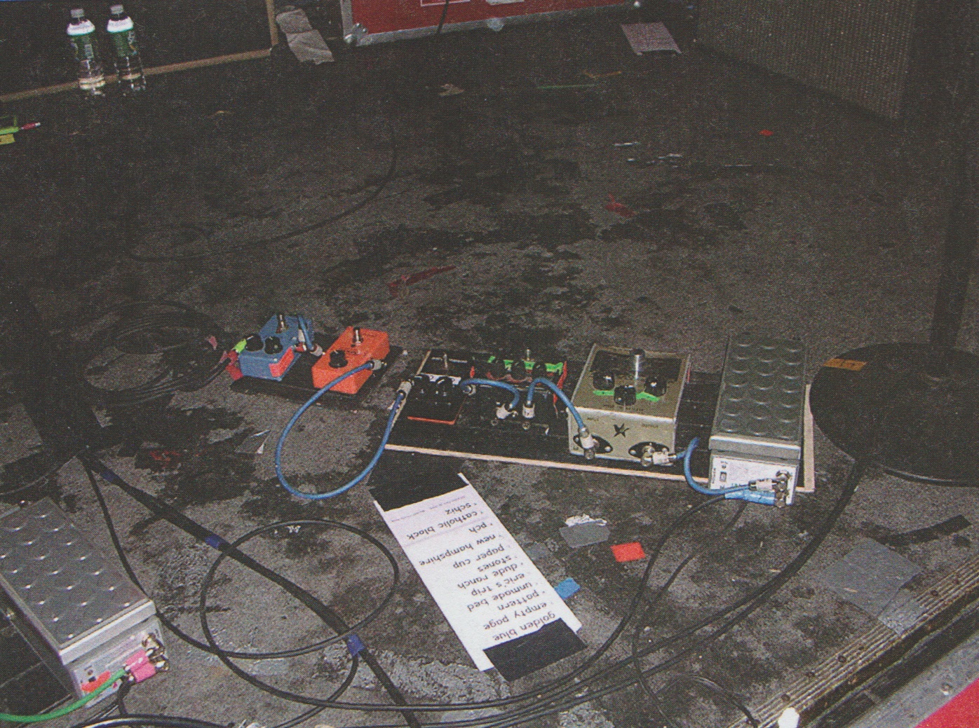 And then I had a vague memory. Jenn Benningfield and longtime sonic tour companion Patrick Suddath attended something like six dozen NURSE tour gigs, and Jenn even wrote a killer book about the whole experience, perfectly punctuated by Patrick's photos. I ran to my bookshelf and sure enough, on April 16th 2005, Patrick was kind enough to photograph everyone's pedalboards at a tiny gig in Hoboken. In addition to confirming Kim and Thurston's chains are as I'd already deduced, I spotted something different in Lee's setup - instead of the trusty Tube Factor, he's using the Paul Cochrane Tim Overdrive which was auctioned in 2018 with handwritten settings, so I figured it had seen the stage at some point. He's definitely back to the Tube Factor for those summer festivals...