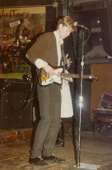 After a handful of interim drummers, Bob Bert won the throne and played his first show with Sonic Youth on November 3rd, 1982. Photos indicate that Thurston is playing an Ovation Magnum bass (he also used it a few days earlier with Lydia Lunch), Lee is screwdrivering his Telecaster, and a new instrument - a blue Jazzmaster copy of indeterminate origin can be seen resting on the stage floor. Though used primarily by Lee in the early 80s, it would become one of Thurston's main guitars until its theft in July 1999.