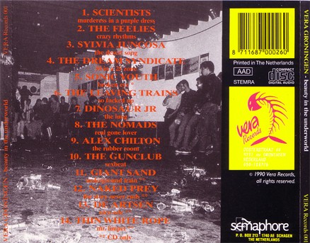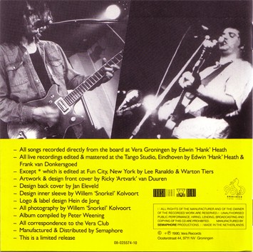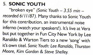 Compilation featuring live material recorded at the Vera in Groningen, NL. Sonic Youth's contribution is "Broken Eye", which is actually the drawn-out noise coda of "White Kross" done on that tour, recorded June 11th, 1987.