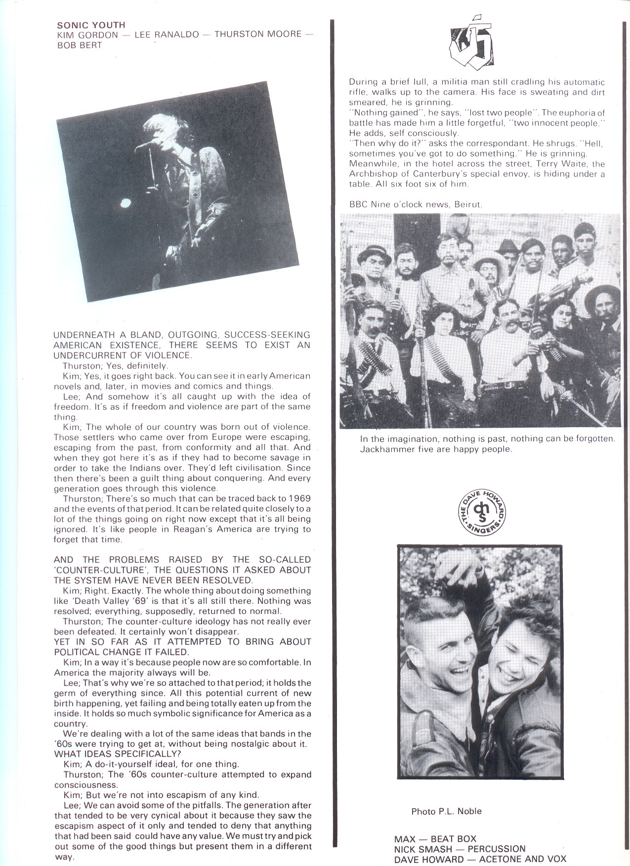 Compilation 12". Sonic Youth contribute a live version of "World Looks Red" from April 28th, 1985 @ Hammersmith Palais in London, England. The same version appeared on "Walls Have Ears".