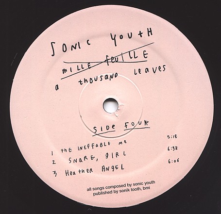 Having finished construction of their own sonic studio, Echo Canyon, in 1996, the band was free to record new material as they pleased. Their first major project was composing the score for Richard Linklater's film "Suburbia" (their first such endeavor since "Made in USA" in 1986). SY contribute 3 songs to the soundtrack, including "Bee-Bee's Song" "Tabla in Suburbia" & an early, extended version of "Sunday" (which would later appear, rerecorded and shortened, on "A Thousand Leaves"). After 2 years of extensive touring for "Washing Machine", SY were in no hurry to return to the road -- instead they focused on composing new material, but with the opportunity to record every note as it was written and let the songs grow naturally, the new pieces were slowly perfected and rather than immediately construct proper vocal lines for each piece to present it as a "song", the bulk of the songs remained instrumental until very late in the game. At a Thurston solo gig in NYC on March 1st, 1997, the full band showed up unannounced and debuted 3 of these new instrumentals: "Proud Marie" "Wildflower" & "Anagrama". They continued working on recordings, bringing in longtime acquaintance and "Confusion is Sex" producer Wharton Tiers, and announced the launch of their own record label -- Sonic Youth Recordings, aka SYR.