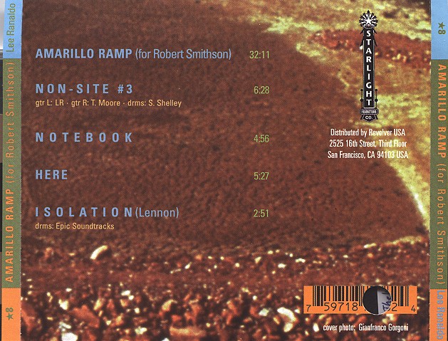 Definitely one of Lee's finest solo efforts, the title track is a live performance from October 10th, 1994 @ the Cooler in NYC (with "wave shaping/spectral improvement by Rafael Toral at Noise Precision, Lisbon 1995"). "Non-Site #3" features Thurston on guitar and Steve on drums in a frantic improvisation, recorded February 6th, 1995 @ Mott Street in NYC (mixed with Wharton at Echo Canyon in June '97). "Notebook" ("the soundtrack for a film of the same title") combines vivid spoken word with beautiful guitar interplay. "Here" is a great open-tuned acoustic instrumental piece previously released on the "Guitarrorists" compilation. The final track is a cover of Lennon's "Isolation" w/ Epic Soundtracks on drums, recorded in May 1991 for a proposed Imaginary Records tribute that never saw the light of day. Lee's vocal is superb.